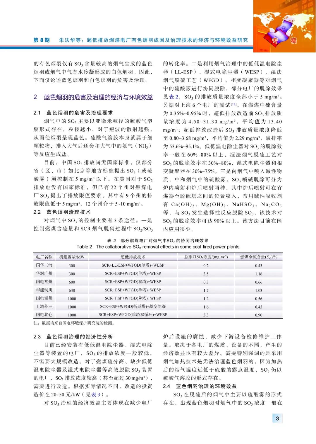(2)燃煤電廠超低排放后,普遍存在的是白色煙羽,有少數(shù)燃用中、高硫煤的電廠會(huì)出現(xiàn)藍(lán)色煙羽。白色煙羽主要是存在視覺(jué)影響,本身對(duì)環(huán)境影響不大,治理能收獲的環(huán)境效益較小;藍(lán)色煙羽中硫酸霧濃度較高,應(yīng)進(jìn)行治理。